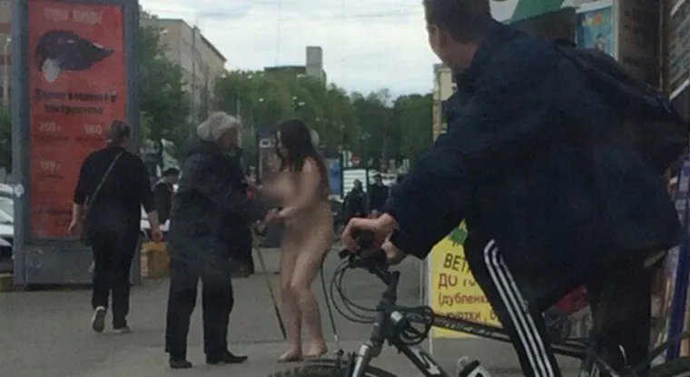 По словам горожан, женщина сначала прогуливалась у железнодорожных касс, потом танцевала у здания цирка, при этом просила у прохожих сигарету. Затем женщина направилась к собору Александра Невского и вошла в храм. Внутри ей дали одежду и вызвали скорую.