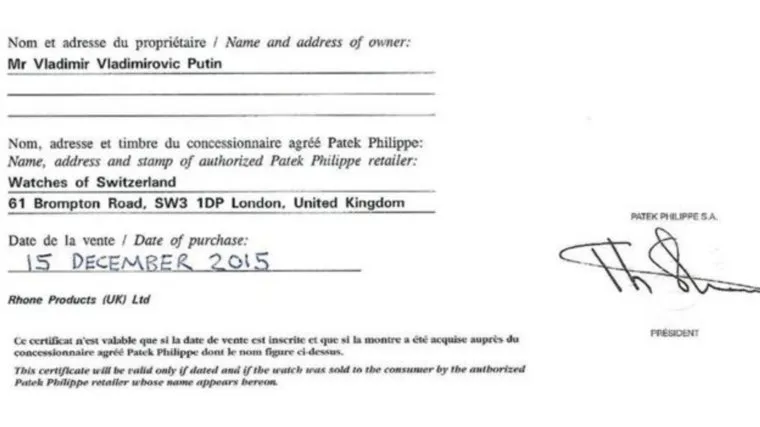 После огласки аукционер — компания Monaco Legends, сообщила Русской службе Би-би-си, что выставленные на продажу и привлекшие внимание журналистов часы Patek Philippe Triple Complication были приобретены «очень важной персоной в подарок человеку по имени Владимир Владимирович Путин» и этот человек представил представителям Pathek все необходимые подтверждения. В противном случае в паспорте значилось бы имя покупателя. Который, к слову, остается неизвестным.