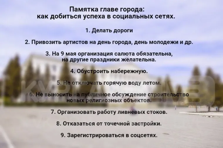Курганцы на странице группы «Курган LIVE» во «В Контакте» разместили рекомендацию главе города Сергею Руденко, как добиться популярности в соцсетях. В список вошли девять пунктов.