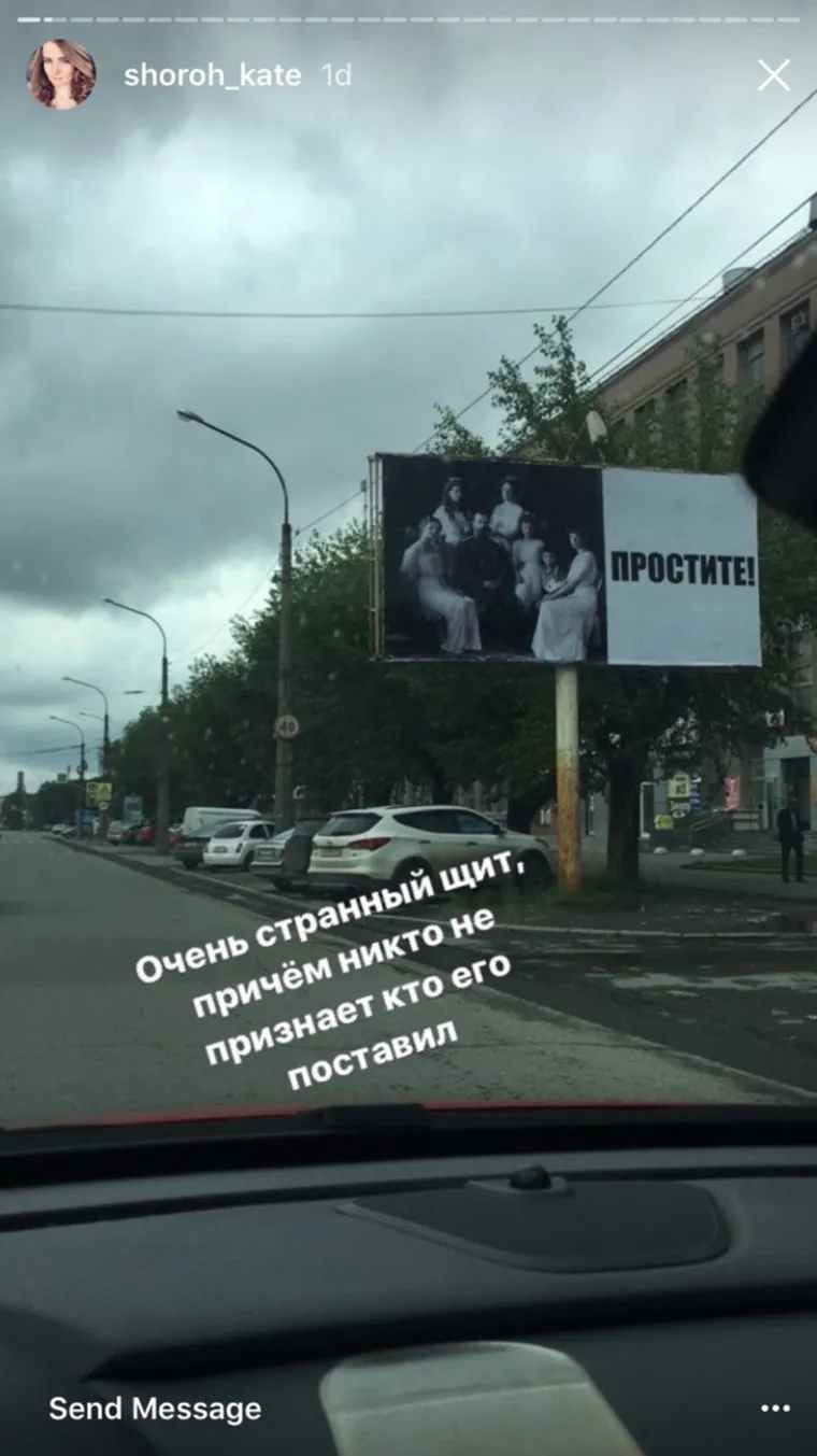 В Екатеринбурге в преддверии Царских дней появился баннер, с одной стороны которого размещена фотография Николая II и его семьи, а с другой — большими буквами написано: «Простите!». Информация об этом появилась в Instagram (деятельность запрещена в РФ) у пользователя shoroh_kate.