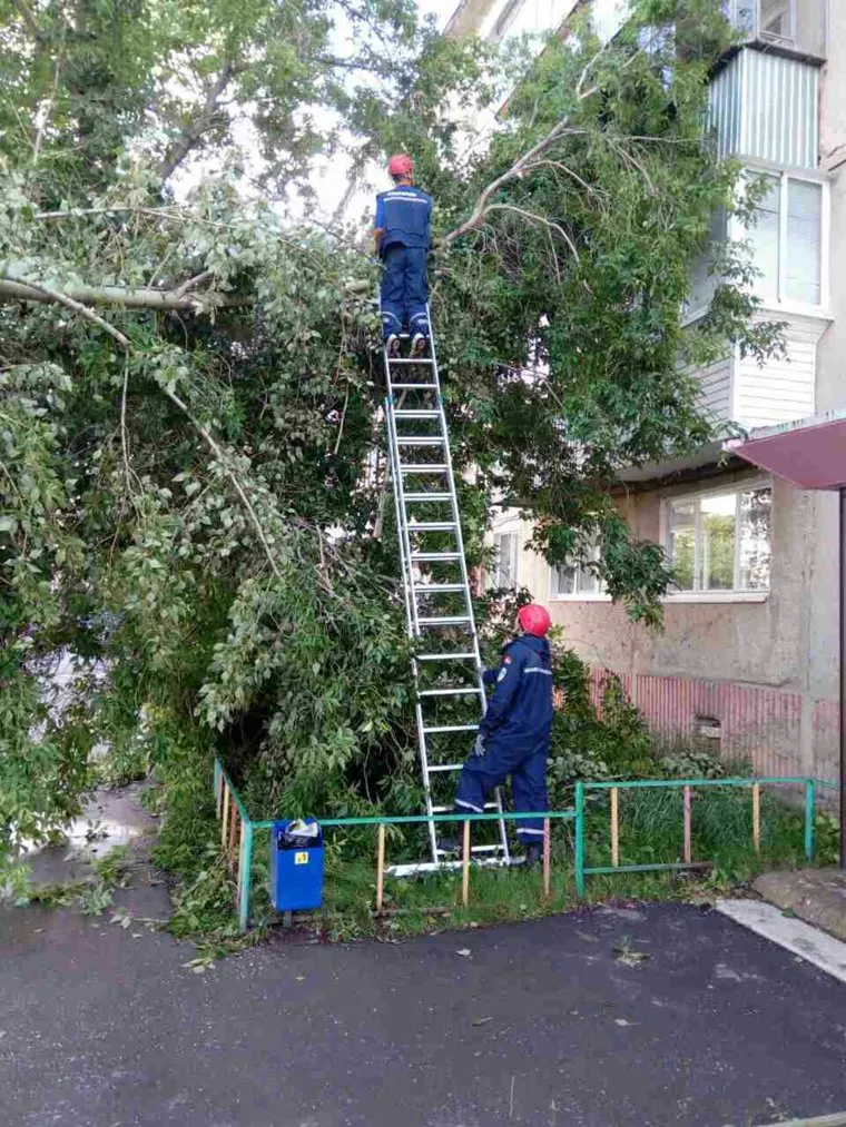 Жильцы пятиэтажного дома во втором микрорайоне Усть-Катава пострадали от упавшего дерева. Потребовалась помощь спасателей.