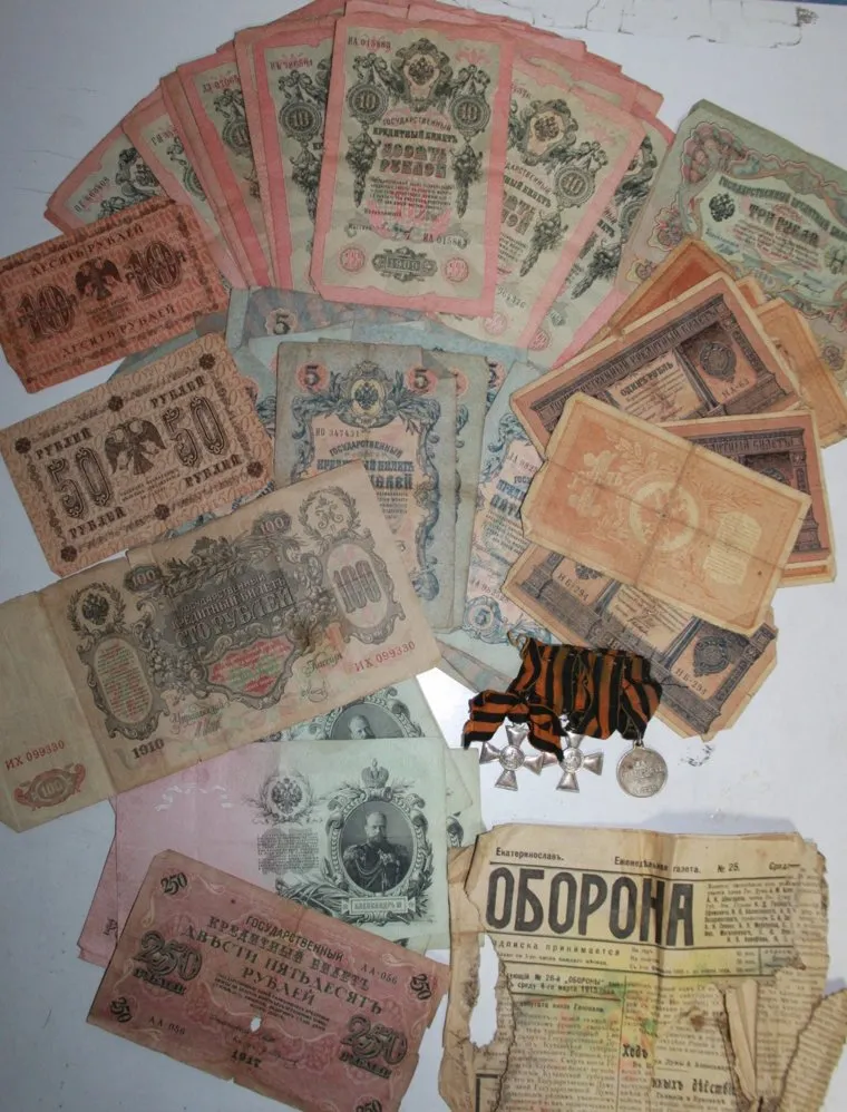Клад был упакован в страницы «Крестьянской газеты» (1923 год) и газеты «Оборона» (апрель 1915 год)