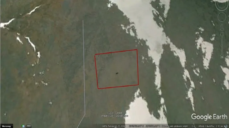 О том, что это не дефект фотоснимка, говорит то, что границы сооружения наблюдаются на спутниковых снимках разных лет, а сам «бункер» имеет четкие прямоугольные границы. Валентин Дегтерев приводит и точные координаты таинственного сооружения — 61°40'13.75«N, 59°21'32.30„E.