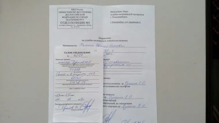 Русских сразу же позвонил редактору, который и обратился в полицию. По рассказу Евгения, полицейские связались с ним минут через 15, а примерно через полчаса на место подъехал наряд полиции. Русских написал заявление и побывал в травмпункте: у него повреждена челюсть (почти выбит зуб). «Меня направили на судебно-медицинское освидетельствование, но перед этим надо попасть к челюстно-лицевому хирургу и невропатологу», — говорит пострадавший.