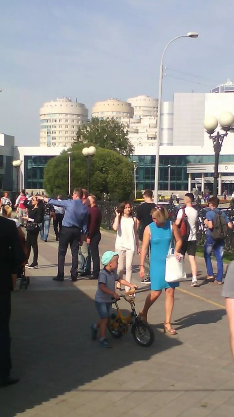 «В 14.50 сегодня снял. Козицын объяснял Алтушкину, что как будет выглядеть (Храм-на-воде, — прим.ред). Фотка возможно не с очень удачного ракурса… Поблизости секьюрити с наушниками тусовались. Потусовались у спуска к воде и уехали. Чуть поодаль, около ресторана, их ждала вереница джипов с номерами ААА», — подписал снимок горожанин Илья Коровин.