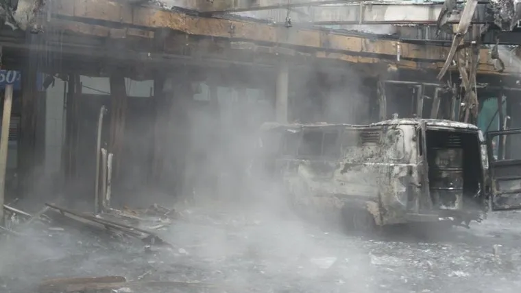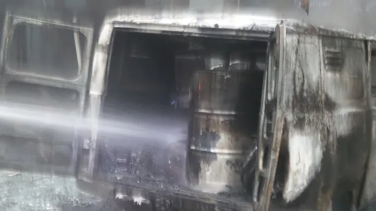В тушении пожара было задействовано 18 единиц спецтехники и 52 человека личного состава. Оценить масштаб ЧП можно по фотографиям агентства «Ночные новости». На них видно, что в машине были баллоны, которые сильно обгорели. Что в них, пока неизвестно.