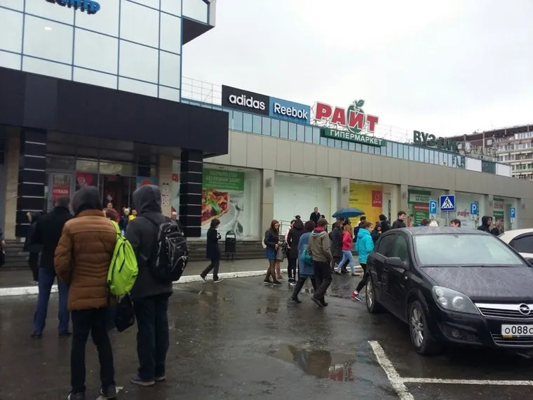 Волна из центра пошла по окраинным ТЦ. На фото — эвакуация 29 сентября из «КИТа»