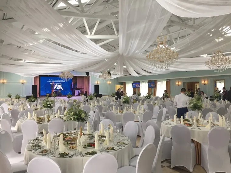 Достоинства зала: вид на величественную природу через панорамные окна, прекрасное техническое оснащение, современный формат автономности, огромную парковку, собственную банкетную службу — высоко оценили требовательные гости.