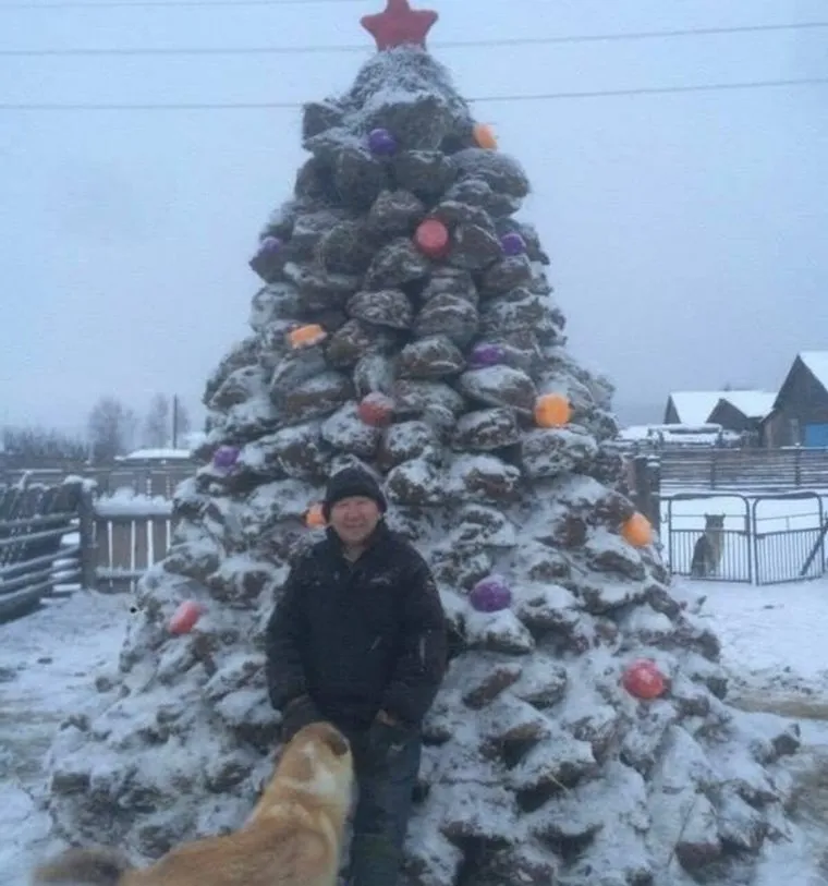 Слава местного «навозного скульптора» Михаила Боппосова, известного своими работами из отходов жизнедеятельности, не дает покоя жителям Якутии. Очередной «шедевр» — новогодняя елка, целиком изготовленная из навоза — появилась в селе Нерюктяйинск Олекминского района.