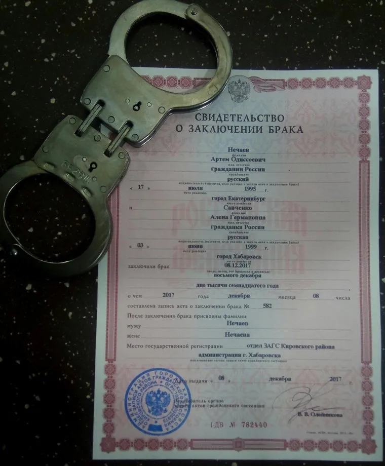 «395 дней моей тусовки в тюрьме. Привет хейтерам и зоозащечникам) У меня все круто))», — написала осужденная за убийство животных девушка. Судя по свидетельству о браке, она взяла фамилию мужа и стала Нечаевой. Супруг хабаровской живодерки-уроженец Екатеринбурга Артем.