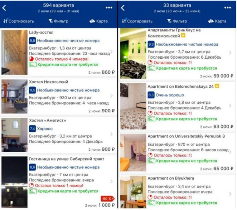 За номер в отеле «ГринХаус» на Комсомольской в июне следующего года туристу придется заплатить 59 тысяч рублей за две ночи (20-22 июня). Еще больше цена в отеле, расположенном в переулке Университетском. Там цена за проживание достигает 65 тысяч рублей. За две ночи в гостинице на Белореченской у туриста попросят 63 тысячи рублей. В обычные дни стоимость номера в сутки не превышает 2,5 тысячи рублей. Информация размещена на сайте по бронированию отелей booking.com