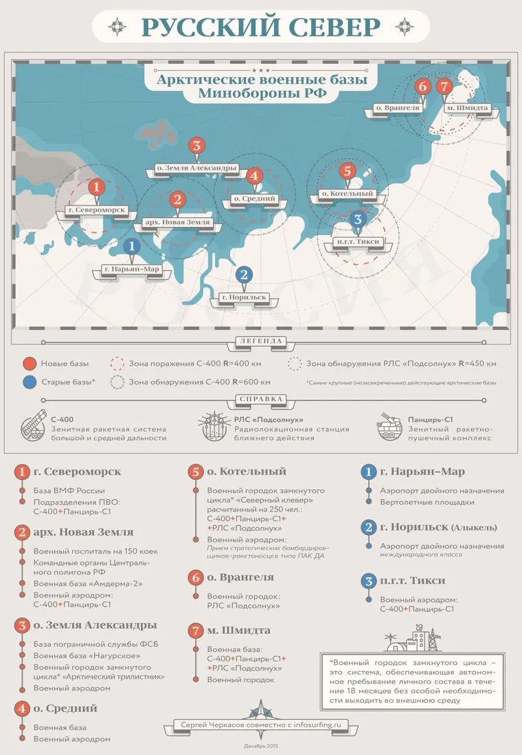 Россия давно осваивает Арктику, в том числе и военным присутствием. Это делается как для охраны северных рубежей страны, так и для обеспечения безопасности промышленной разработки ресурсов на побережье и шельфе северных морей.