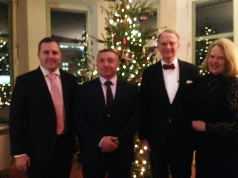 «Я приперся первым и успел сфотографироваться с консулом и его семьей, пока еще никого не было, — рассказал «URA.RU» один из приглашенных, депутат Дмитрий Головин. — Говорю: «Есть старинная русская шутка: мы с вами быстро выпиваем по 3-4 бокала вина, и, когда гости приходят, мы уже конкретно пьяные». Они вежливо похихикали, говорят: «Ваш английский хорош!» В общем, отказались. Я спрашиваю: «А можно я так сделаю?» — «Пожалуйста!»