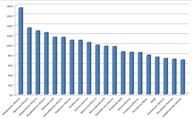 Так, согласно статистическим данным, в 2017 году по показателю заболеваемости лидируют Кемеровская область, где зарегистрировано 174,5 новых случаев на 100 тысяч населения, за ней идут Иркутская (134,0) и Свердловская (128,1) области. На пятом месте с показателем 115,3 — Пермский край, на седьмом — Тюменская область (109,2), на восьмом — Челябинская (104,6), на десятом — Курганская (99,3). Ханты-Мансийский автономный округ — на 17-м месте с показателем 75. Средний уровень заболеваемости ВИЧ-инфекцией в стране составил 53,9/100 тысяч населения.