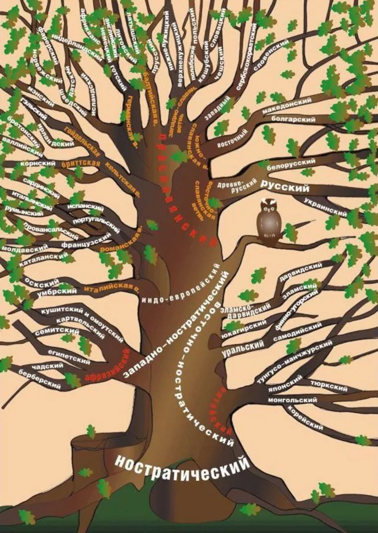 Иллюстрация отображает связи и родство между языками мира