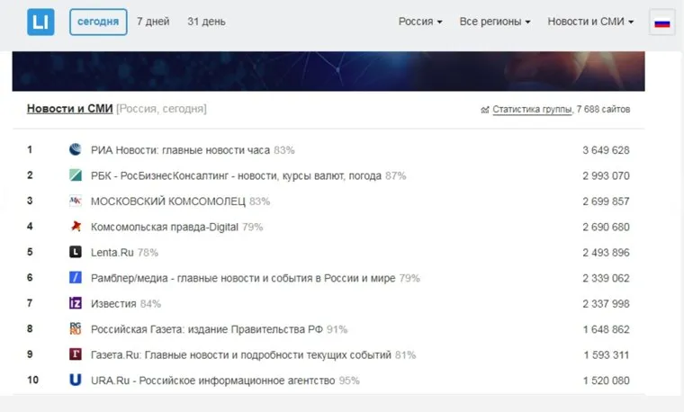 «URA.RU» оказалось на десятой строчке общероссийского рейтинга