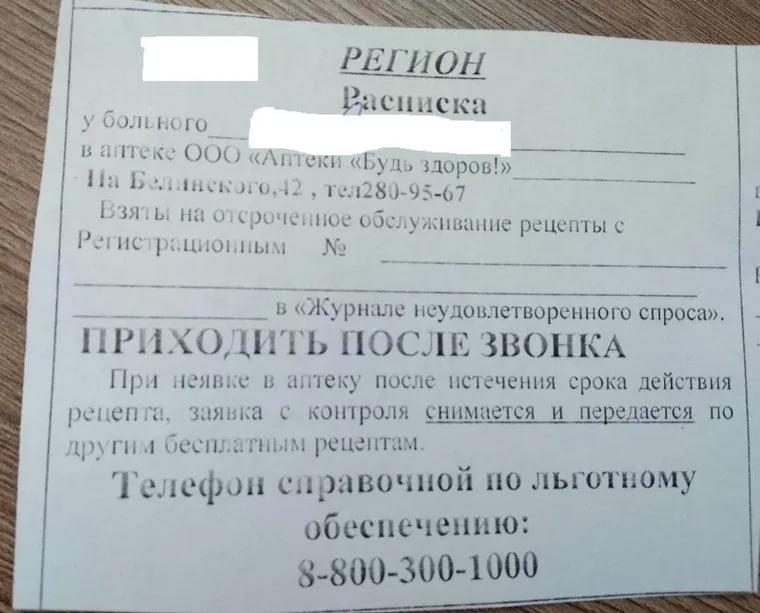 В ООО «Аптеки «Будь здоров!» подтвердили, что возможны случаи, когда льготных медикаментов нет в аптеке. Тогда выдается расписка, препарат заказывают на складе. Срок ожидания может составить до 10 дней. Но аптека является только пунктом отпуска медикаментов, а собственник льготных лекарств — минздрав Прикамья. Если препарата вдруг не окажется на складе, то аптека уже ничем помочь не сможет.