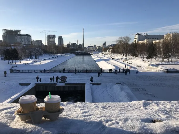 08:23 Горожане уже потихоньку собираются, занимают места, откуда открывается максимально хороший обзор. И это несмотря на холод! Сейчас в Екатеринбурге минус 14. Видно, что люди готовы стоять в дозоре максимально долго: кто-то пришел с термосом, кто-то с кофе, у кого-то глинтвейн.