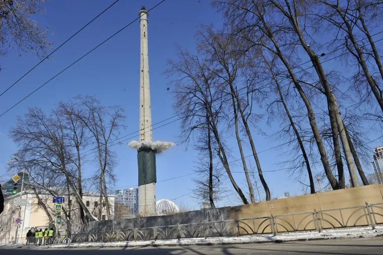 07:29 Снос телебашни намечен на 9.00. Живущих неподалеку пообещали предупредить о начале демонтажа сиреной. Первый предупредительный сигнал длительностью 30 секунд прозвучит уже через час, в 8:30. Еще два раза сирену включат непосредственно перед взрывом.
