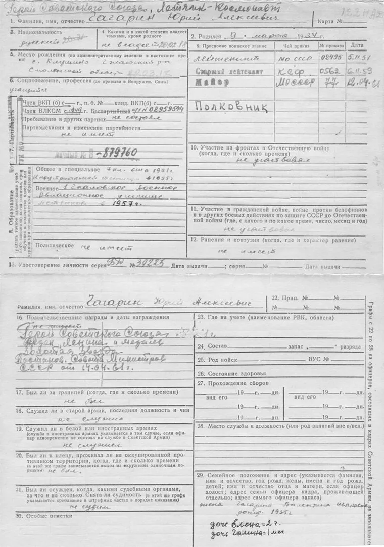 Опубликованы уникальные архивные документы о Гагарине. ФОТО