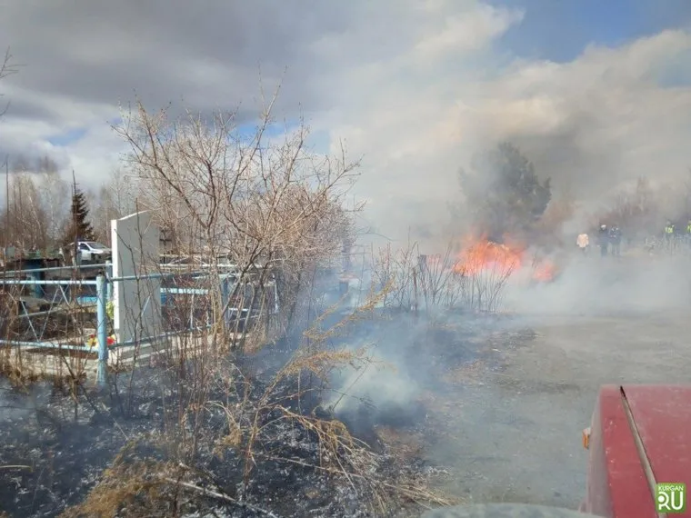 В Кургане в родительский день загорелось кладбище. ФОТО