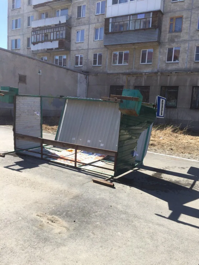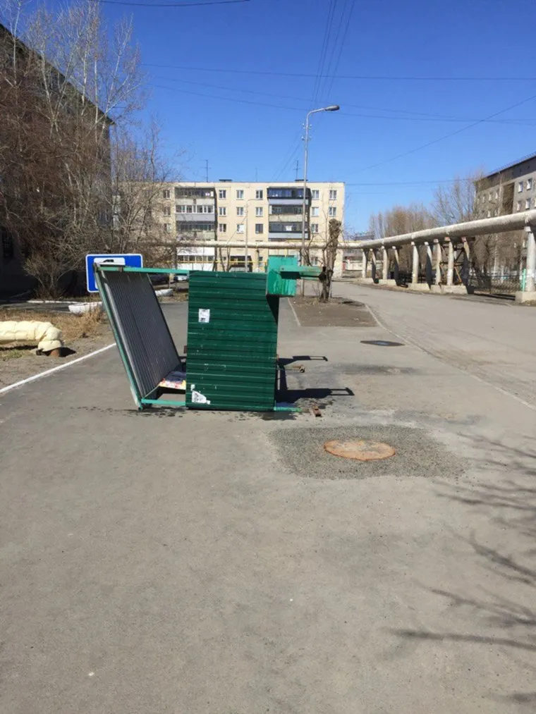 В Кургане горожане делятся фотографиями опрокинутых ветром остановок