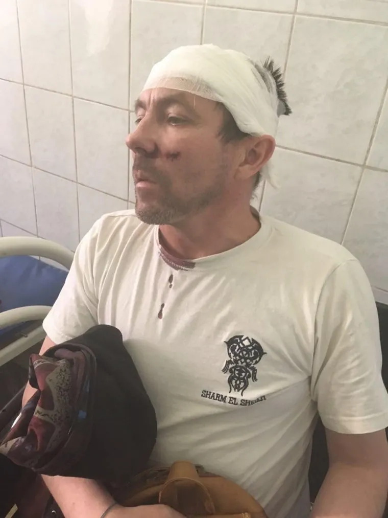 «Я попытался объяснить ему, что данное место — земля публичного пользования. В ответ охранник начал хамить: „Ты че базаришь?“ и сразу попытался ударить меня кулаком в лицо. Поскольку я увернулся, он по инерции упал. В итоге он сбегал в будку за лопатой и начал меня кромсать — рассек мне голову и лицо. Раз восемь меня окучил. Я весь в крови еле добрался до отделения полиции», — рассказал Прытков.