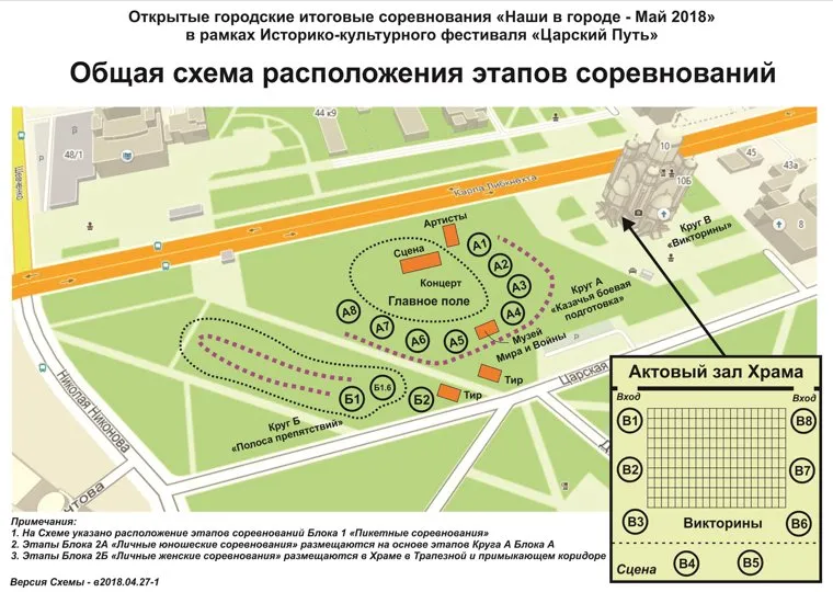 На схеме обозначено, где и как будут проходить соревнования «Наши в городе — 2018»