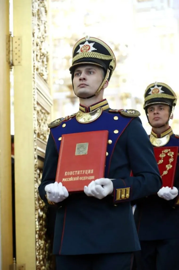 13:59 Комендант Кремля ожидает Владимира Путина у здания.