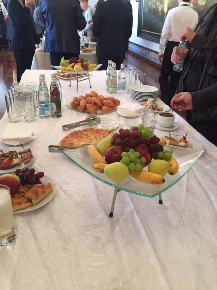 «А вот это уже реально новинка. По случаю инаугурации не только пирожки и бутерброды», — пишет в Facebook (деятельность запрещена в РФ) корреспондент «Дождя» Михаил Рубин