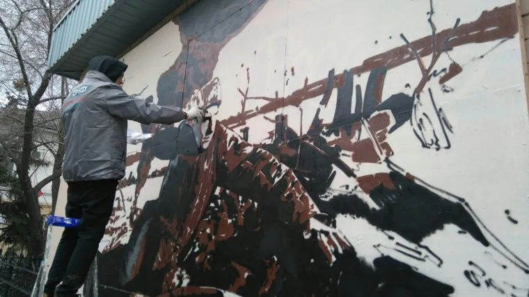 На трансформаторной подстанции СУЭНКО в Тюмени нарисовали граффити с бойцом Красной армии. Такой подарок горожанам к Дню Победы решили сделать активисты Общероссийского народного фронта.