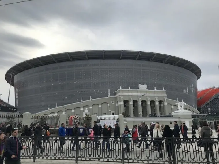 Приятное впечатление на эксперта портала произвела обслуживающая инфраструктура стадиона, на котором летом пройдет ряд игр футбольного ЧМ-2018. Кроме того, он добавляет: «Голос из мегафона вкрадчиво предупреждает посетителей: „Не стесняйтесь задавать нам вопросы; мы здесь, чтобы вам помогать; советуем снять деньги в банкомате“. Стюарды в яркой одежде помогают болельщикам сориентироваться в системе входов и выходов».
