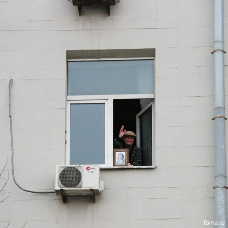 Ветеран, встречавший «Бессмертный полк» с портретом матери, впервые не появился в окне. ФОТО