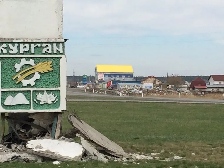 Курганцев возмутило состояние стелы, стоящей на въезде в город. «Очень символично». ФОТО
