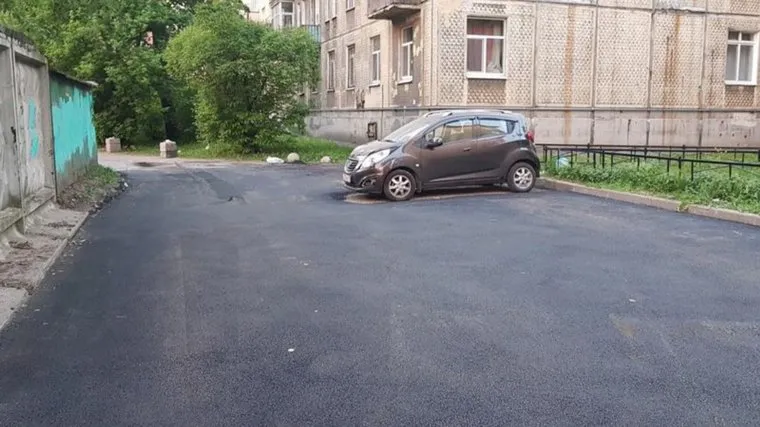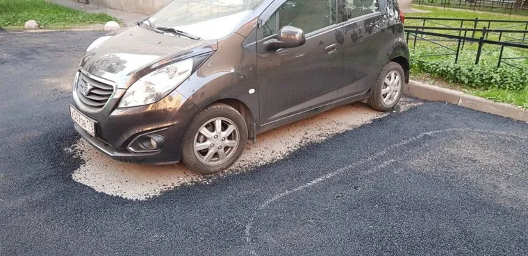 В Петербурге рабочие уложили асфальт вокруг припаркованного авто. ФОТО