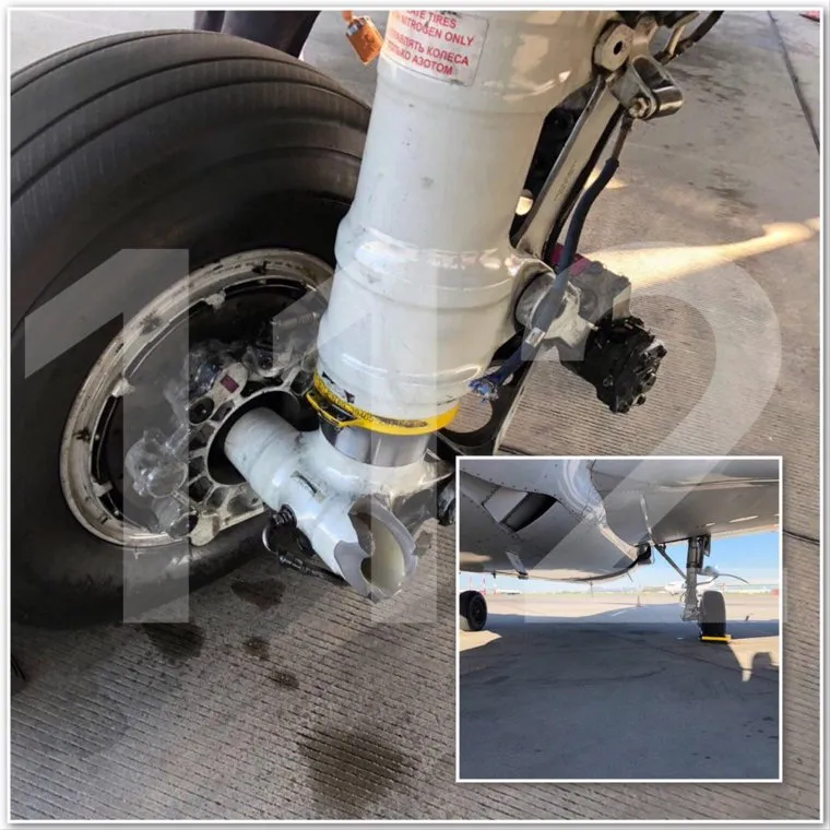 «После приземления самолета обнаружилось, что на основной стойке с левой стороны отсутствует колесо — отломилось с частью стойки. На борту находились 96 пассажиров и пять членов экипажа. При посадке никто не пострадал», — сообщил «URA.RU» источник в аэропорту Внуково.