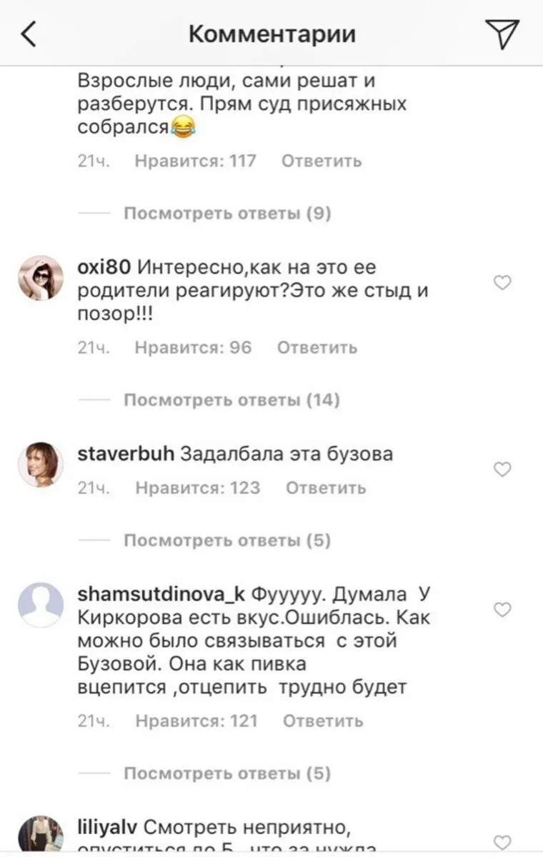 Пользователи заметили, что Примадонна лайкнула комментарий, оскорбляющий Бузову