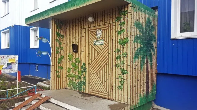 Креативными подъездами может похвастаться дом в недавно построенном микрорайоне «Снегири». Так, один из них стилизован под секретный бункер, второй выглядит как рыцарский замок. Еще один подъезд смотрится хижиной из бамбука.