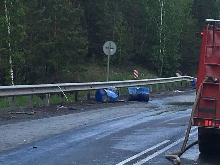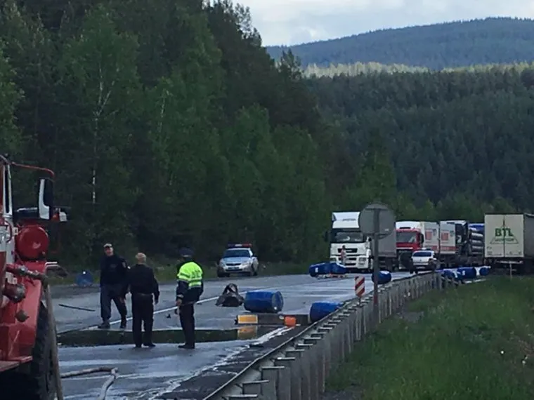 Как сообщили «URA.RU» в Управлении федеральных автомобильных дорог (Упрдор) «Южный Урал», лобовое столкновение легковушки с грузовой машиной произошло в районе поворота на Усть-Катав в 15.10 по местному времени. Фура Renault Magnum везла бочки с маслом. По словам очевидцев, водитель большегруза нажал на тормоз, а так как шел дождь и дорожное покрытие было мокрое, прицеп выкинуло на встречную полосу. В него въехал двигавшийся по встречной полосе Renault Kaptur. Пострадали водитель и пассажир легковой машины. Об этом «URA.RU» рассказал сотрудник упрдора, находящийся на месте ДТП.