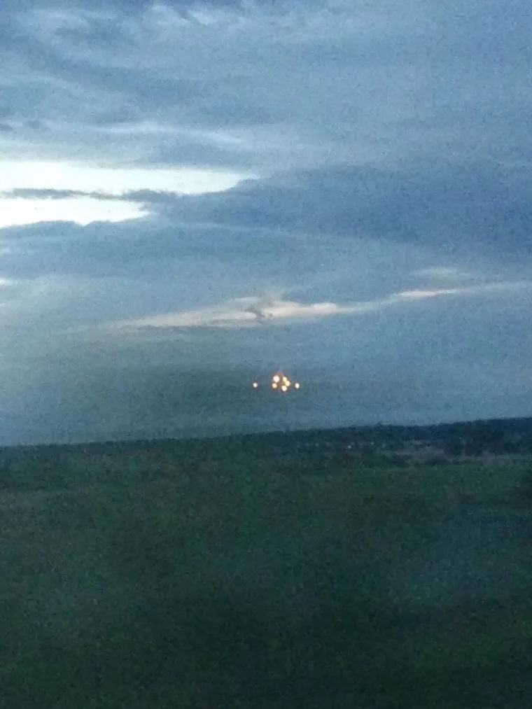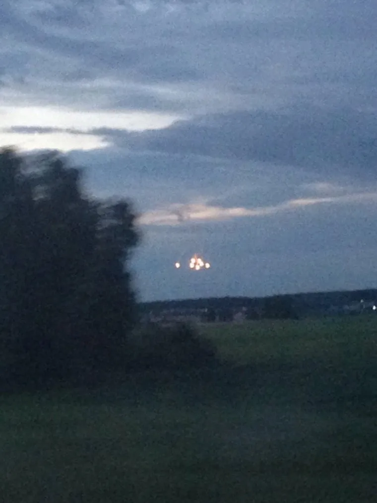 «Сегодня мы ехали из города Челябинска и неожиданно обратили внимание на странный свет в небе, в районе Мисяша. В начале огни были высоко в небе, потом стали опускаться до земли и заново подниматься синхронно», — написал автор фотографий в сообществе «Инцидент Миасс».