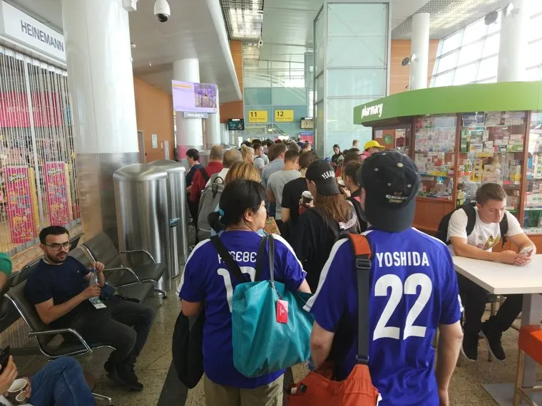 Пассажиры рейса 1404 авиакомпании «Аэрофлот» не смогли улететь из Москвы в Екатеринбург из-за поломки их самолета. Среди тех, кто вынужденно задержался в столице, — болельщики сборных Японии и Сенегала.