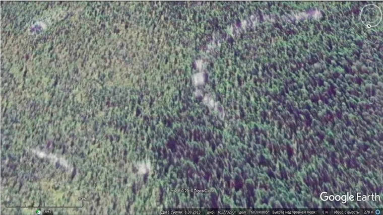 Уральский исследователь Валентин Дегтерев обнаружил в районе перевала Дятлова загадочный силуэт, который напоминает «Золотую бабу» — легендарный идол, которому в древности поклонялись народы Севера. Снимки Google-карт, изученные Дегтеревым, датируются 2013 годом.