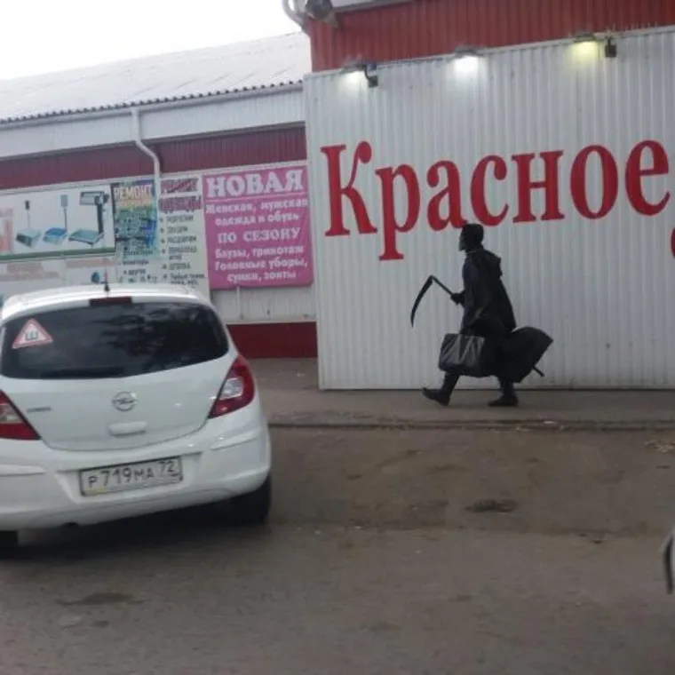 Ранее человека в костюме смерти видели в районе вокзала , а также у одного из магазинов известной сети алкомаркетов. С какой целью горожанин надевает этот костюм, так и осталось загадкой.
