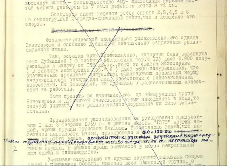 В черновике постановления о закрытии дела имеются сведения об «очень высокой радиоактивности» на одежде и телах Золотарева и Дубининой, которые никогда не работали с радиоактивными материалами. Из итогового документа эти сведения исчезли, чтобы вновь всплыть при исследовании могилы Семена Золотарева в наше время . «Если спустя 60 лет были такие высокие цифры, то что там было в 1959 году?», — задается вопросом исследователь.