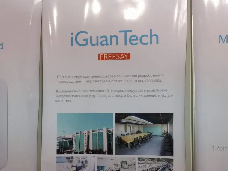Еще одна компания продает здесь голосовые переводчики iGuan Tech. Сначала кажется, что у них с русским языком все не так уж плохо (даже запятые на месте): «Первая в мире компания, которая занимается разработкой и производством интеллектуального голосового переводчика». Но и здесь нашлись ошибки: «Компания высоких технологий, специализируется в разработке интеллектуальных устройств, платформ больших данных и услуг клиентов».
