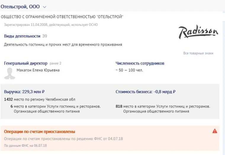 В ООО «Отельстрой», владельце отеля RADISSON BLU в Челябинске, приостановлены все финансовые операции по счетам. Фирма принадлежит бизнес-стуктурам, которые контролируются экс-губернатором Михаилом Юревичем. Сам отель входит в число гостиниц, где планируется поселить высокопоставленных участников саммитов ШОС и БРИКС в Челябинске в 2020 году. В бизнес-структурах бывшего региона это считают технической ошибкой.