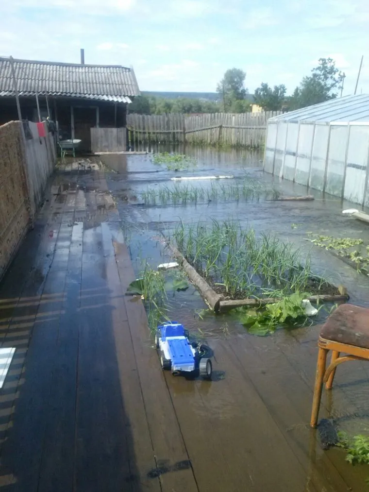 Местные жители не унывают и снимают видео в садах. «Мама, я все здесь полил, воду на завтра заготовил», — говорит один из местных жителей, показывая затопленный огород.