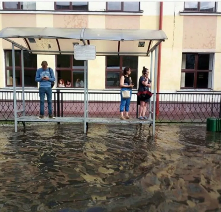 Да и на остановках общественного транспорта логичнее было бы ожидать катера и лодки, чем автобусы и маршрутки: