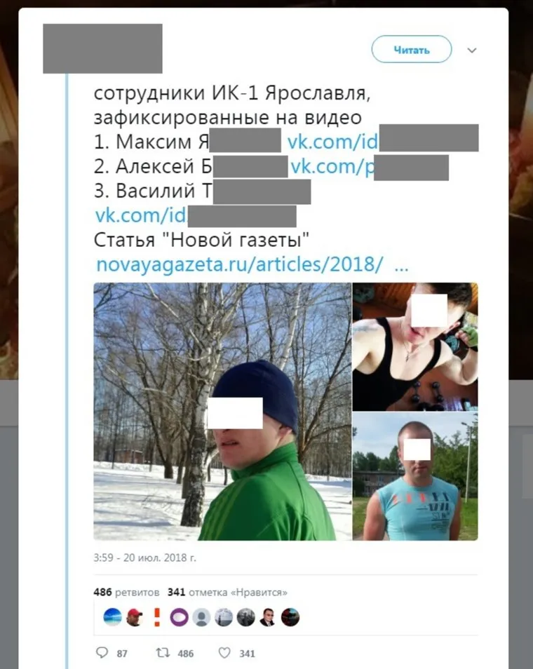 Пользователи социальных сетей объявили о поиске сотрудников службы исполнения наказаний, которые замешаны в жестоком избиении заключенных в колонии №1 в Ярославской области. В Twitter уже появились первые имена с фотографиями и ссылками на аккаунты предположительных участников неправомерных действий.