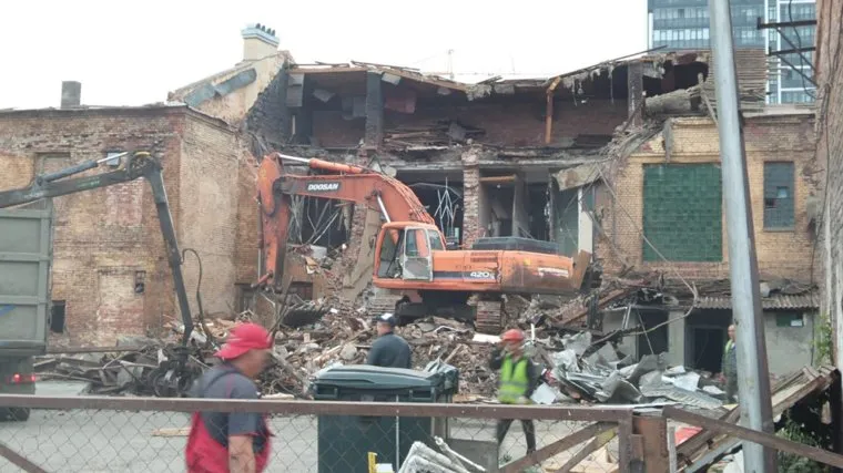 Вызванная на место сноса полиция распорядилась остановить работы